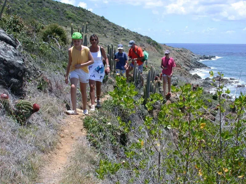 Explore the rugged, undeveloped Atlantic coastline of eastern St. Maarten on this scenic 3-hour guided hike. Beginning at Guana Bay and following the coastline trail, your guide will point out iguanas, seabirds, cactus, neighboring islands, and natural rock formations — some shaped like the ancient faces of the Arawak people.